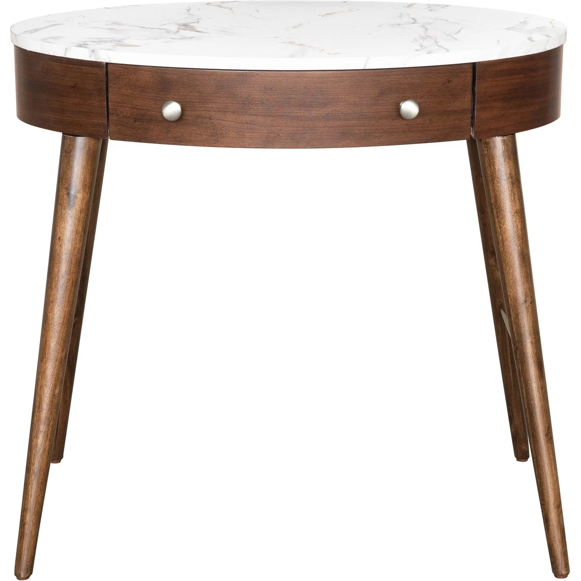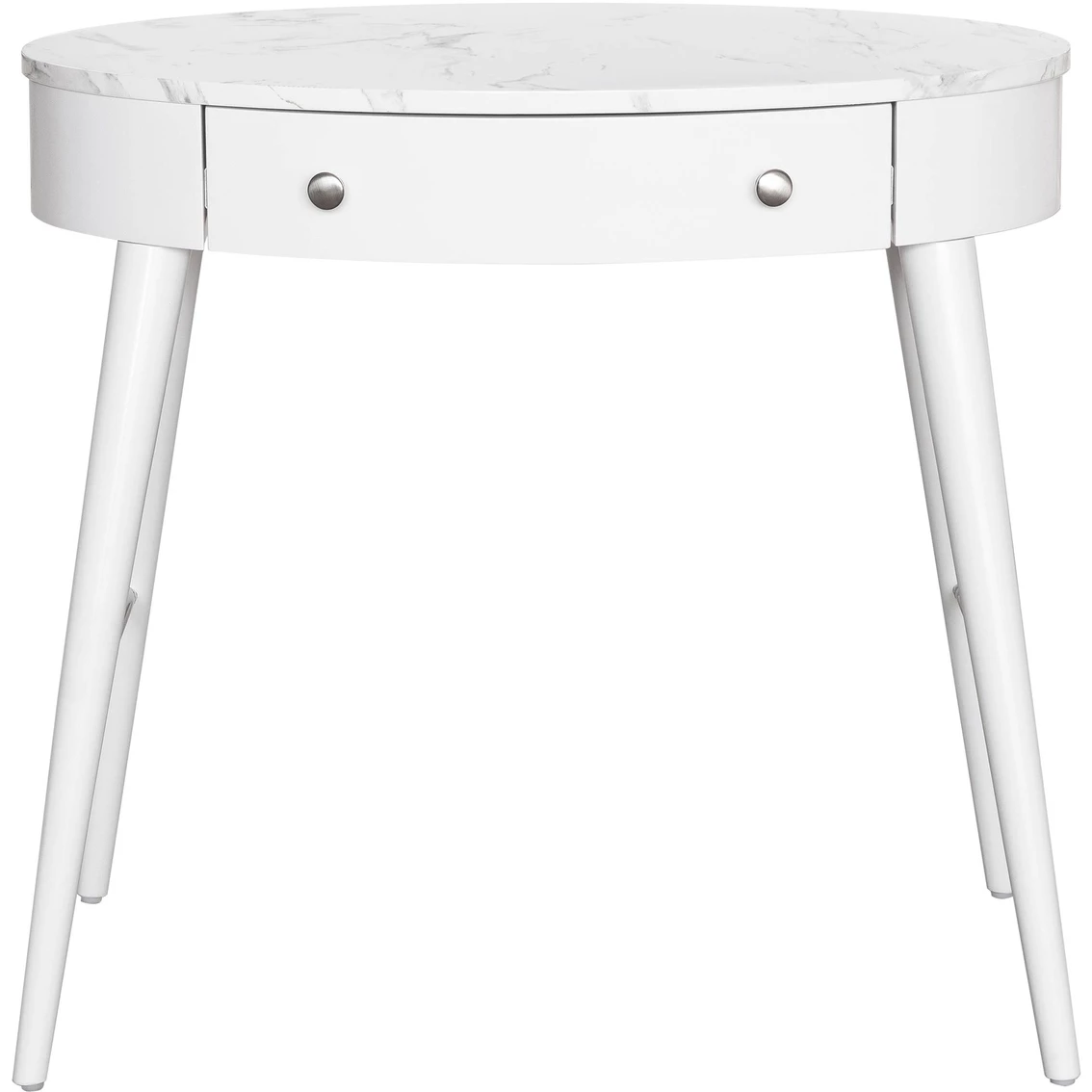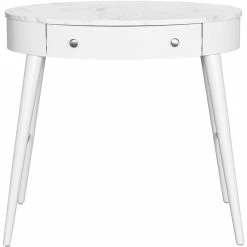 The simple oval shape of this Mid- Century Desk from Accentrics Home makes it an ideal standalone accent piece for any room. A spacious wooden drawer with stainless steel pulls offers storage, to keep your workspace free of clutter or to hold supplies and documents. Alternatively, use it as a display table or entryway point, where it’s good looks can be accentuated by a few choice pieces of decor. The table’s tailored lines add a retro flair, while its marble top, solid wood legs and stainless steel ferules give it a luxe look. Model: DS-D438-806-1.