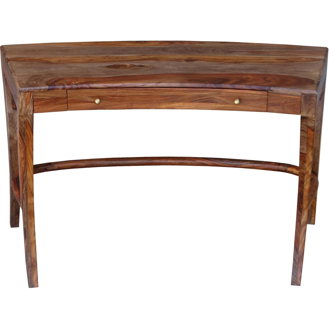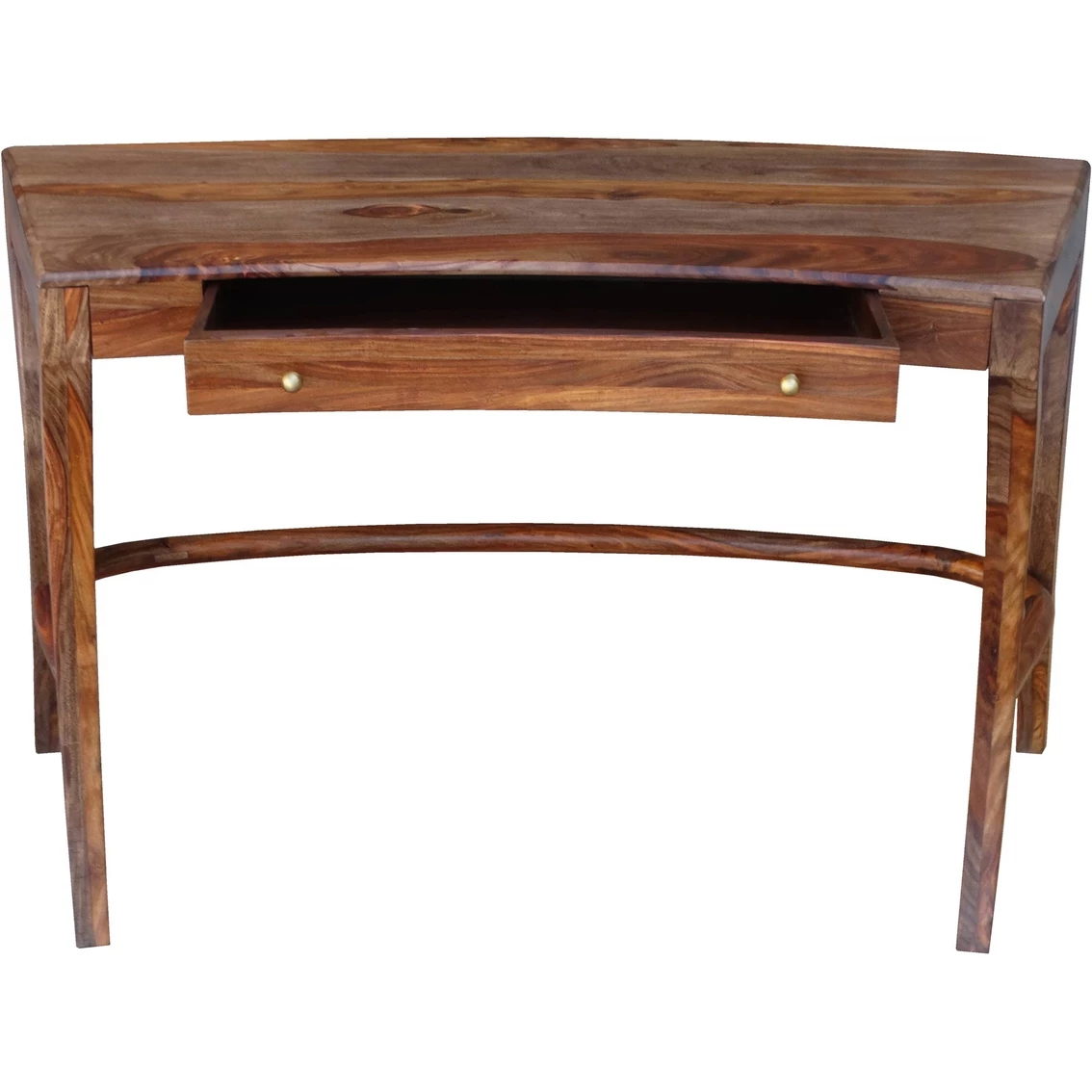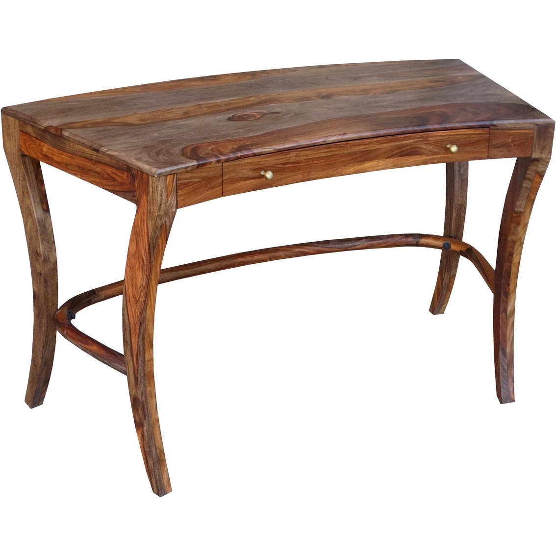 Handsome, hardworking and one of a kind. The distinctive grain — which will differ from desk to desk — gleams through the Sheesham Highlight Wash finish. With a gracefully curved body and legs, a spacious single middle drawer and a large surface work area, this desk from Coast to Coast Accents will be a pleasure to work at no matter where you are.
