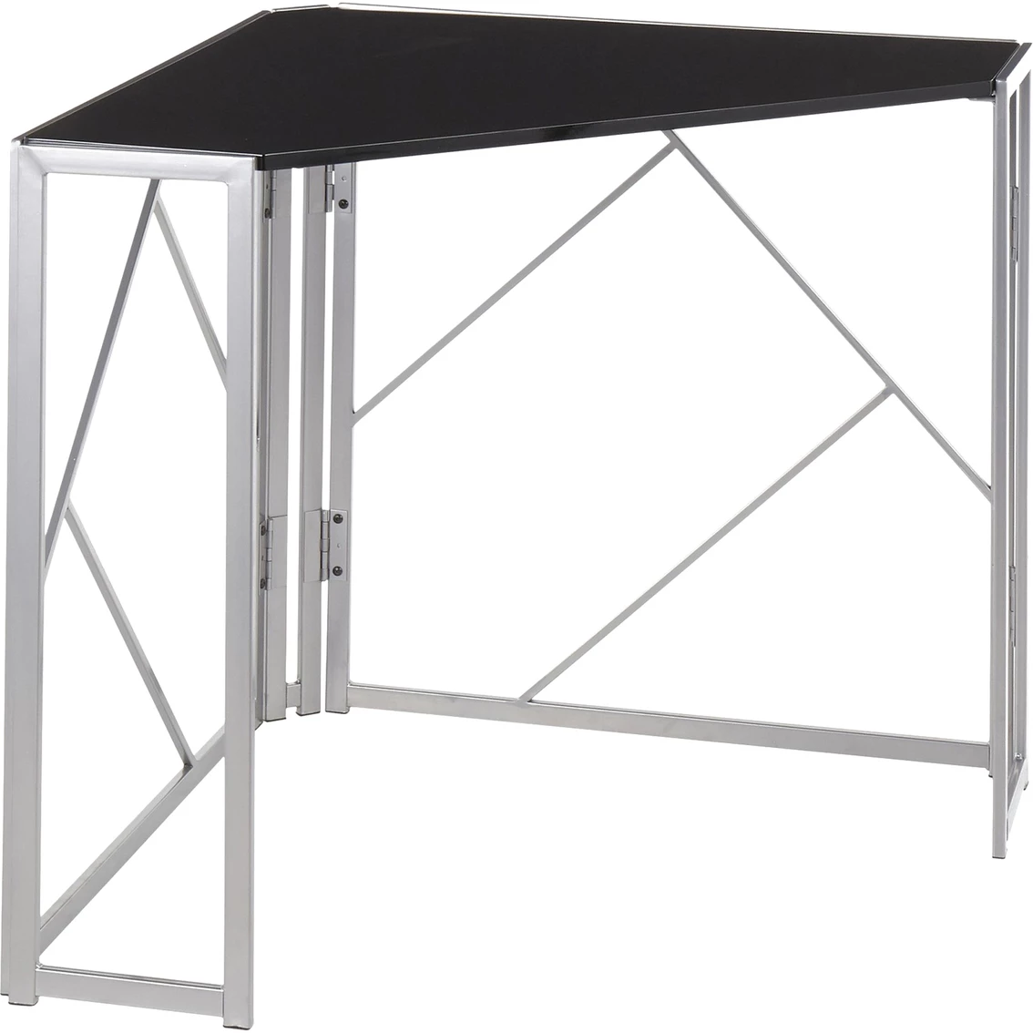 With its pleasant design and modern lines, the Folia Corner Desk by LumiSource is a unique statement in any space. The Folia features a silvertone painted metal frame and a black wood top, sure to add a touch of glamour to your surroundings. Foldable for easy storage and mobility.