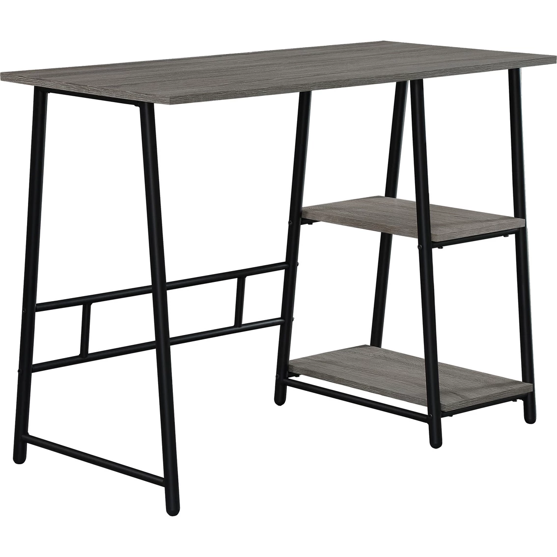 Give yourself more storage and a streamlined place to work from home. Make a creative space to tinker, or designate a landing pad for homework and checking emails, with the OSP Home Furnishings Frame Works 40 in. Desk. Two handy storage shelves keep all of your office supplies close at hand, organized and tidy. An attractive metal frame provides a keen industrial vibe plus lateral strength, offering durable beauty for years to come. Quick and easy assembly makes this desk a great choice. Model: FWK42.