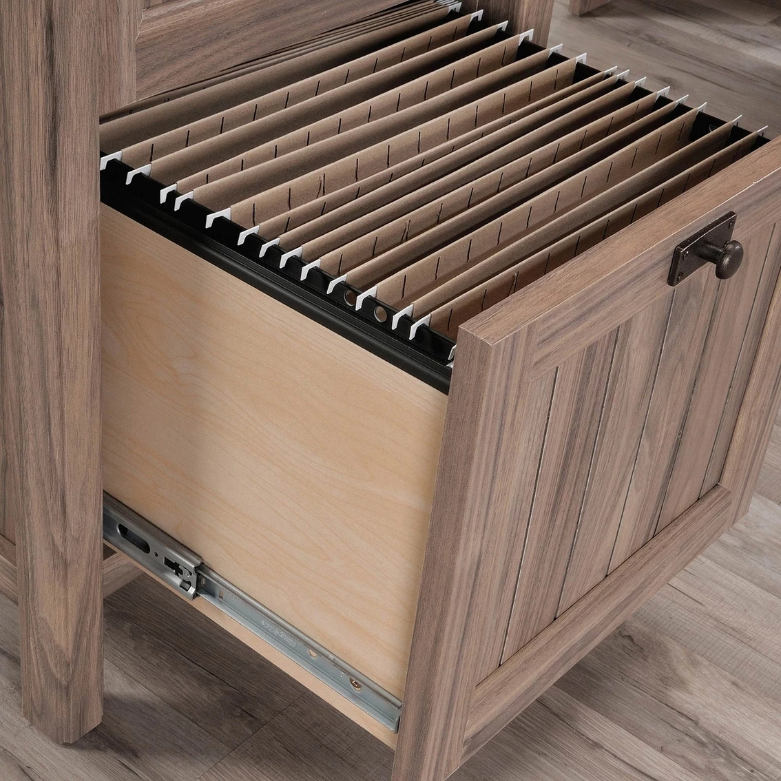 New ❤️ Sauder Costa Washed Walnut L-Shaped Desk With File Drawer ✨
