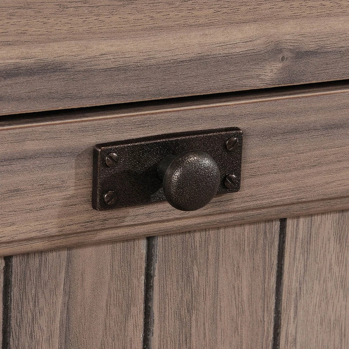 Add some unique style and functionality to your home with this lift-top coffee table from the Sauder Edge Water Collection. The top lifts up and forward creating a multipurpose work surface so you can work from home, surf the web, or eat a snack while relaxing on your couch. Other features include hidden storage beneath the top and open shelves for storing blankets and board games or displaying knick-knacks and picture frames. This coffee table is finished on all sides in a stylish Chalked Chestnut, making it a versatile fit for any room in your home. Model: 419096.