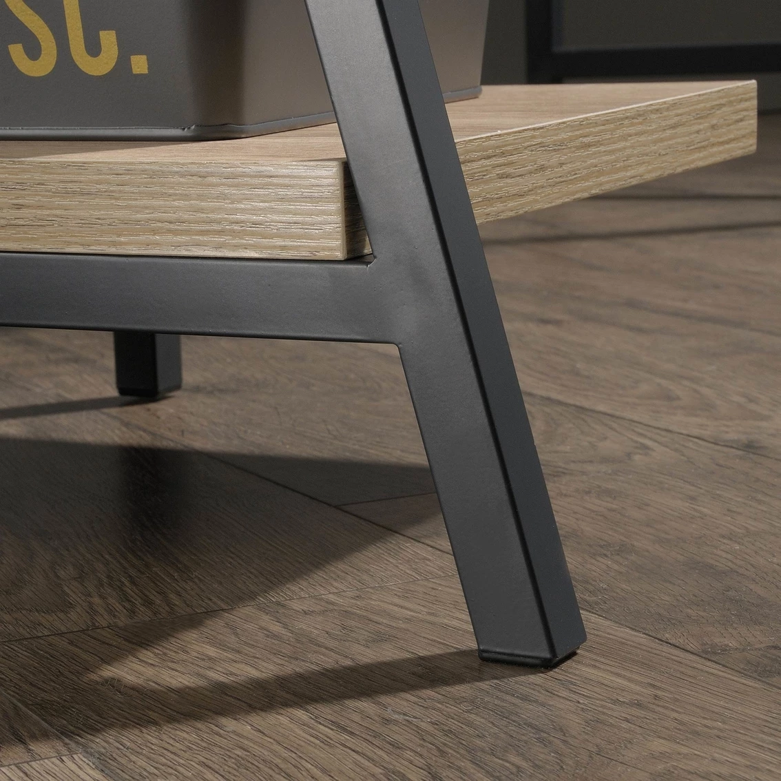 Looking for a little inspiration when it comes to working on your big projects and papers? Sauder has got you covered! Find motivation and more when you add modern beauty and unique design to your home office or work space with this desk with hutch from the North Avenue collection. This student desk features a sturdy 1 in. thick top and shelves. Its spacious top surface provides you with the room you need for all your desk essentials like your laptop, stacks of papers, notepads and your hot cup of coffee. Find room for all your additional office supplies on either of the two lower open shelves. This hutch offers convenient storage and display of a variety of different items like decorative plants and knick-knacks. Its durable, black metal frame ensures that it’s sturdy and built to last. This desk is finished in Charter Oak on all sides so it’ll look great from every angle.