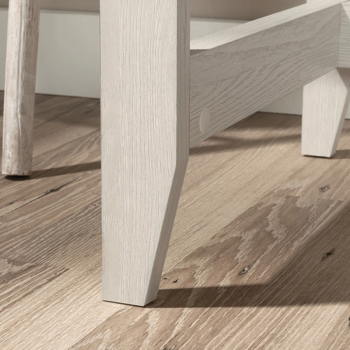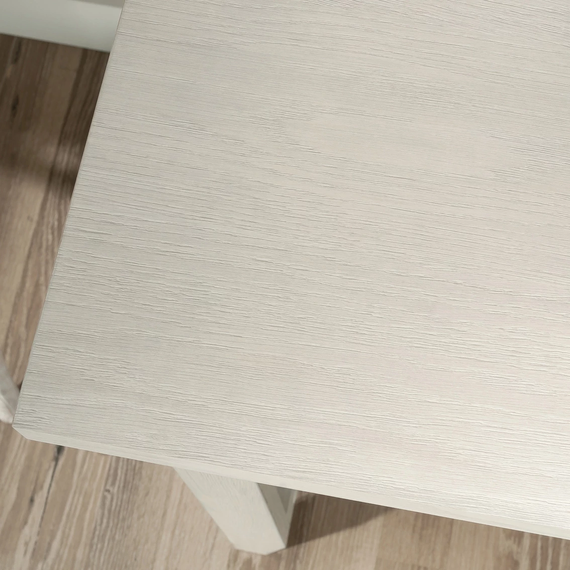 Finished on all sides for versatile placement, this home office desk with open storage will look polished from every angle with tapered feet and chamfered edges. Finished in Glacier Oak, this small office desk is everything you need and more. Model: 432012.