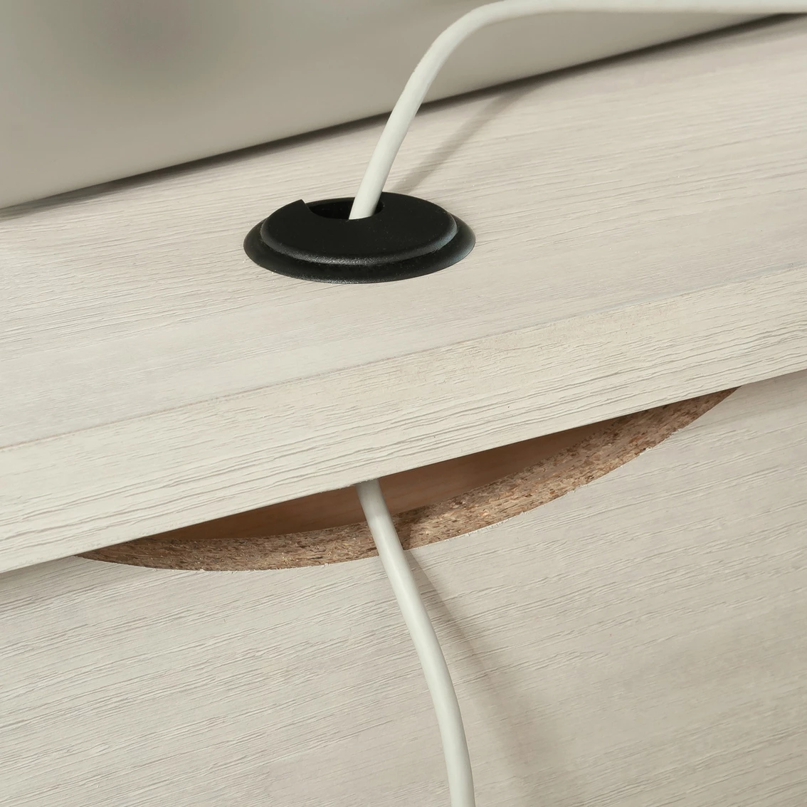 This pedestal desk features two drawers that open and close on smooth metal runners. The file drawer of this desk holds letter-size hanging files for easy access to your most important documents. The lower open shelf provides you with additional storage space for miscellaneous items like organizing bins and home decor. A pencil drawer beneath the top surface gives your wood office desk convenient space for your planner, pens and even your laptop. A desk-top grommet hole for electrical cord access keeps your home office free of cord clutter and a strong and lightweight panel construction makes it easy to assemble and rearrange.