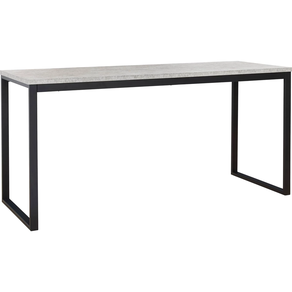 Casual linear style is ideal to keep your home office aesthetic appealing and clean. The Lazabon desk features an architectural look with its faux concrete melamine top and a metal base in a dark pewter-tone finish, for the perfect balance of crisp and cool. Melamine is an increasingly popular choice for table surfaces. It can be manufactured to resemble wood grain but with kid-friendly durability. Featured item is desk only; images may show options. Model: H102-25.
