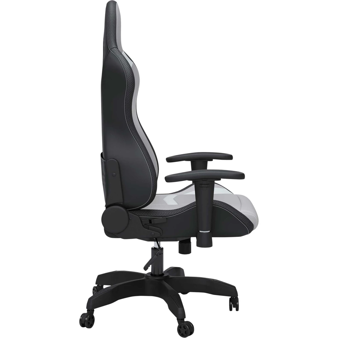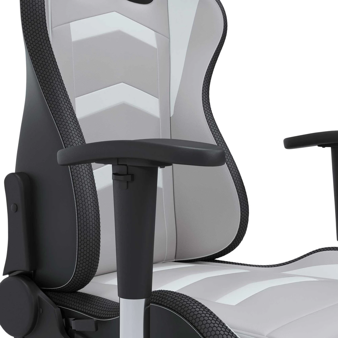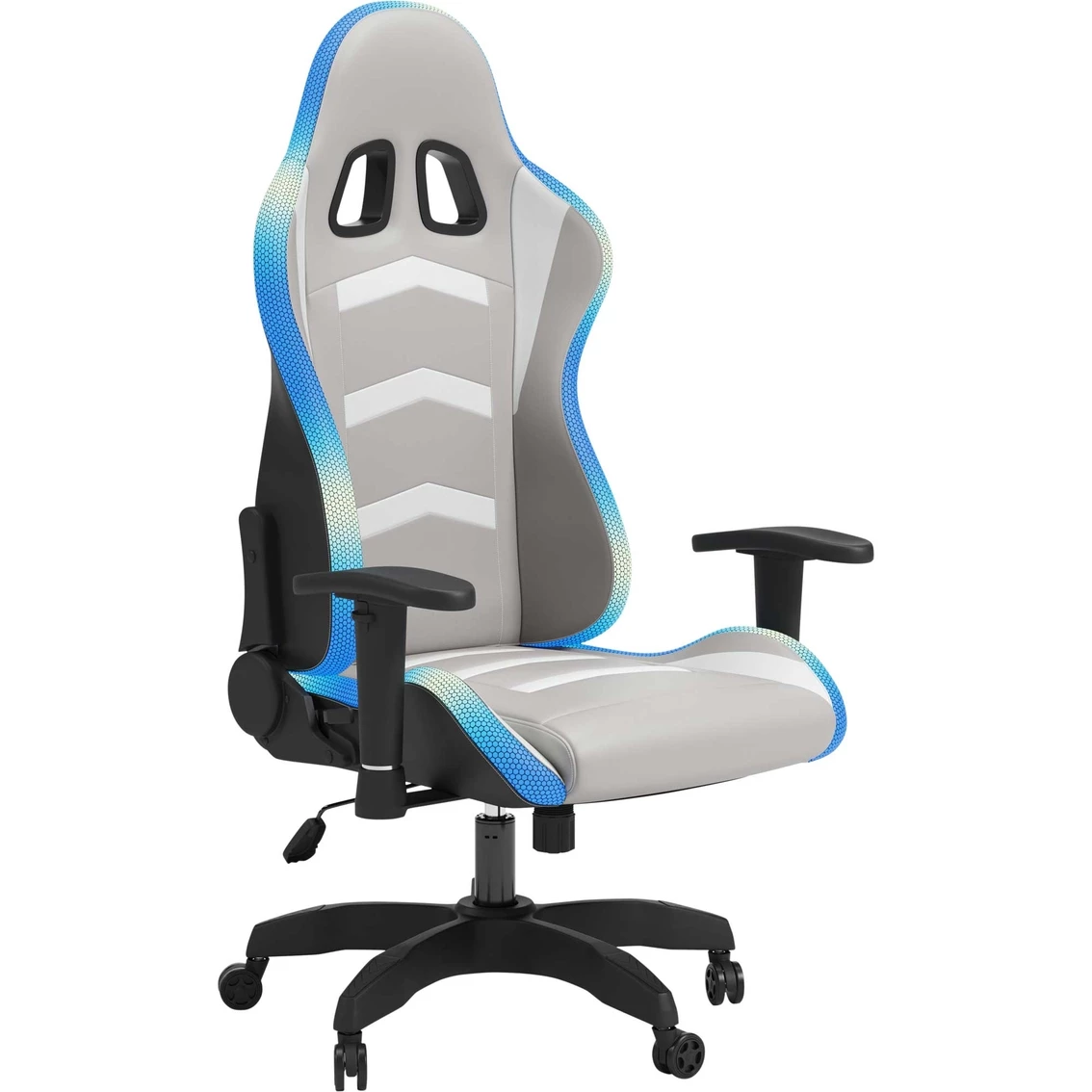 Tech this out! A swivel office chair that’s as cool as it is comfortable. The ultimate choice among gamers, the Lynxtyn swivel office chair from Signature Design by Ashley is hard to beat. Quality crafted with a sturdy steel frame, this swivel office chair with comfy contoured seat and cutting-edge design is upholstered in a durable faux leather in white and gray. Cleverly integrated into the chair: powered LED lighting to enhance the gaming experience. Choose from six different colors or stream a mix of color using the remote control. With a swivel base, smooth-gliding casters and adjustable seat height/tilt feature, this office chair with fully reclining backrest has serious game. Includes 1-meter long USB power cord and wall power adapter. For wire-free power, use the convenient pocket on the back of the chair to place a portable power bank (power bank not included). Featured item is chair only; images show options. Assembly required. Model: H400-08A.