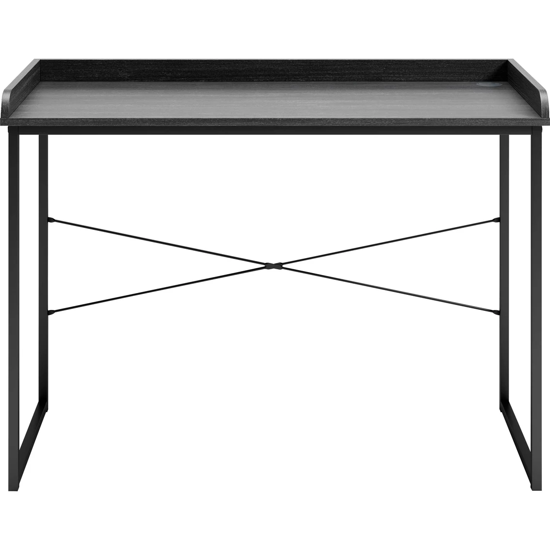 Elevate your home office with this simply sensational Ready to Assemble Yarlow home office desk. Pairing a blackened wood look with a black metal base for modern appeal, this minimalistic desk with ample work space is dressed to impress in a no-muss, no-fuss way. Featured item is desk only; images may show options. Assembly required. Model: H215-10.