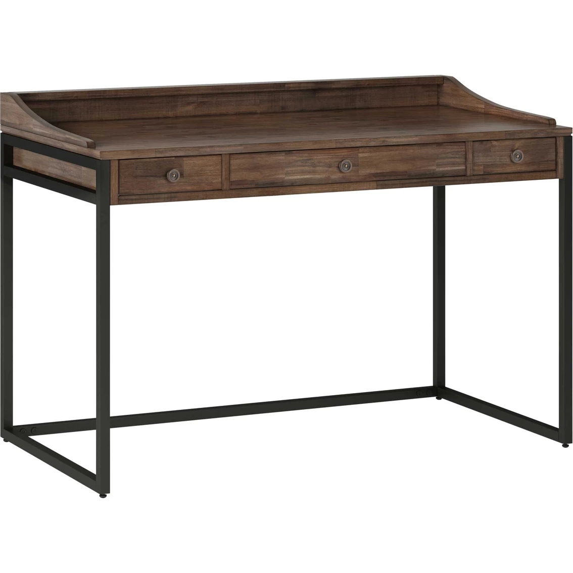Combine industrial style and function with the Ralston Small Desk from Simpli Home. This desk is crafted of solid acacia with solid metal legs and frame. This desk offers a spacious top surface and includes a keyboard tray for added convenience. Two side drawers provide plenty of space for small office supplies. It is a versatile and stylish addition to your home or office workspace. Model: