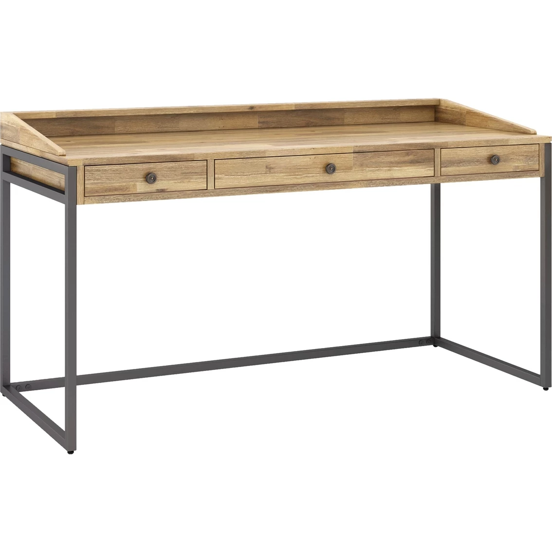Combine industrial style and function with the Ralston Desk from Simpli Home. This desk is crafted of solid Acacia with solid metal legs and frame. Generous in size, this desk offers a spacious top surface and includes a keyboard tray for added convenience. Two side drawers provide plenty of space for small office supplies. It is a versatile and stylish addition to your home or office work space.